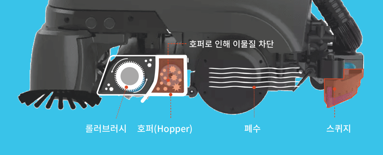 R3 Scrub Pro 구조 (롤러브러시 + 호퍼 타입)